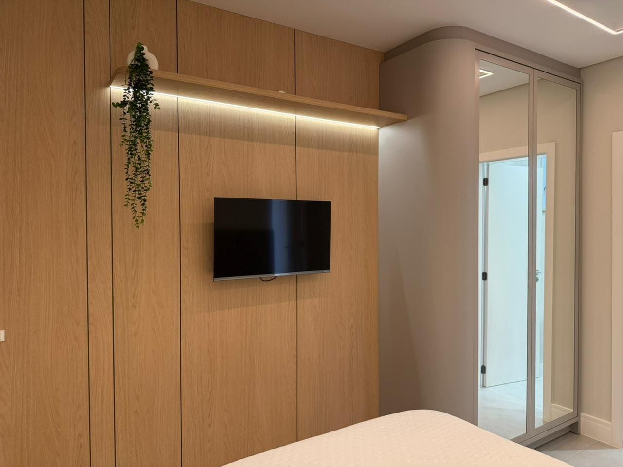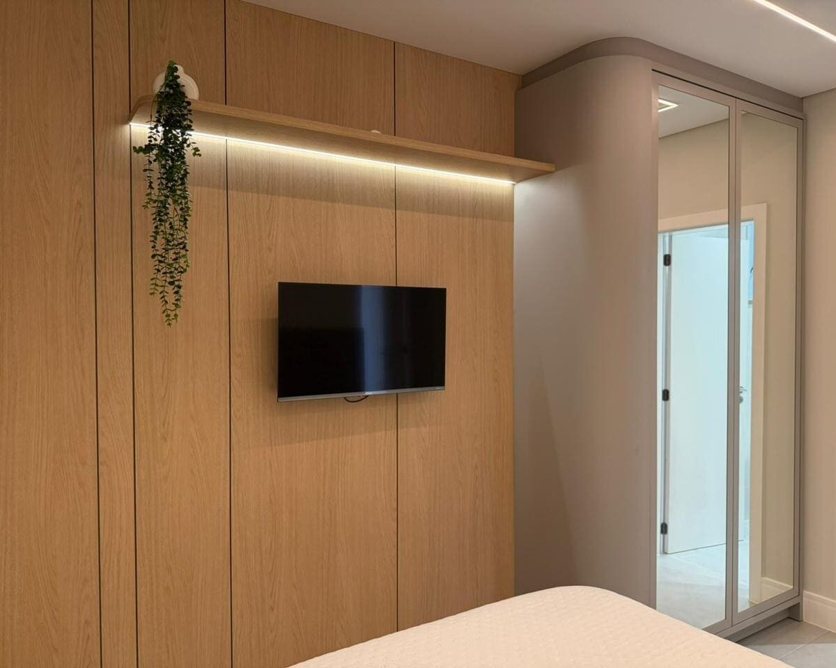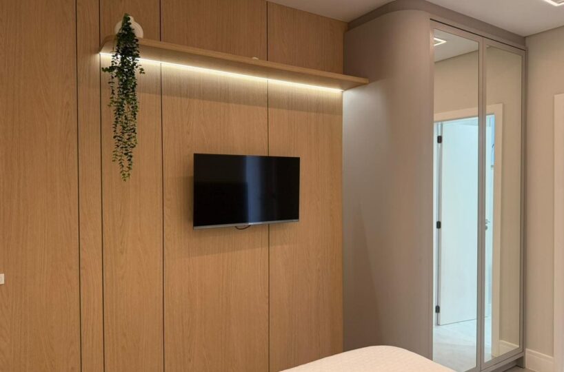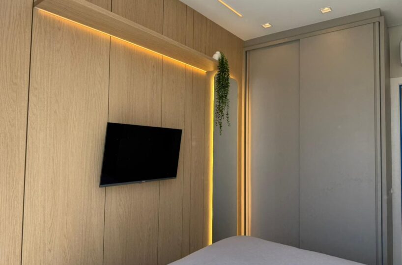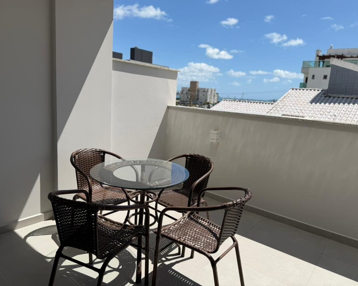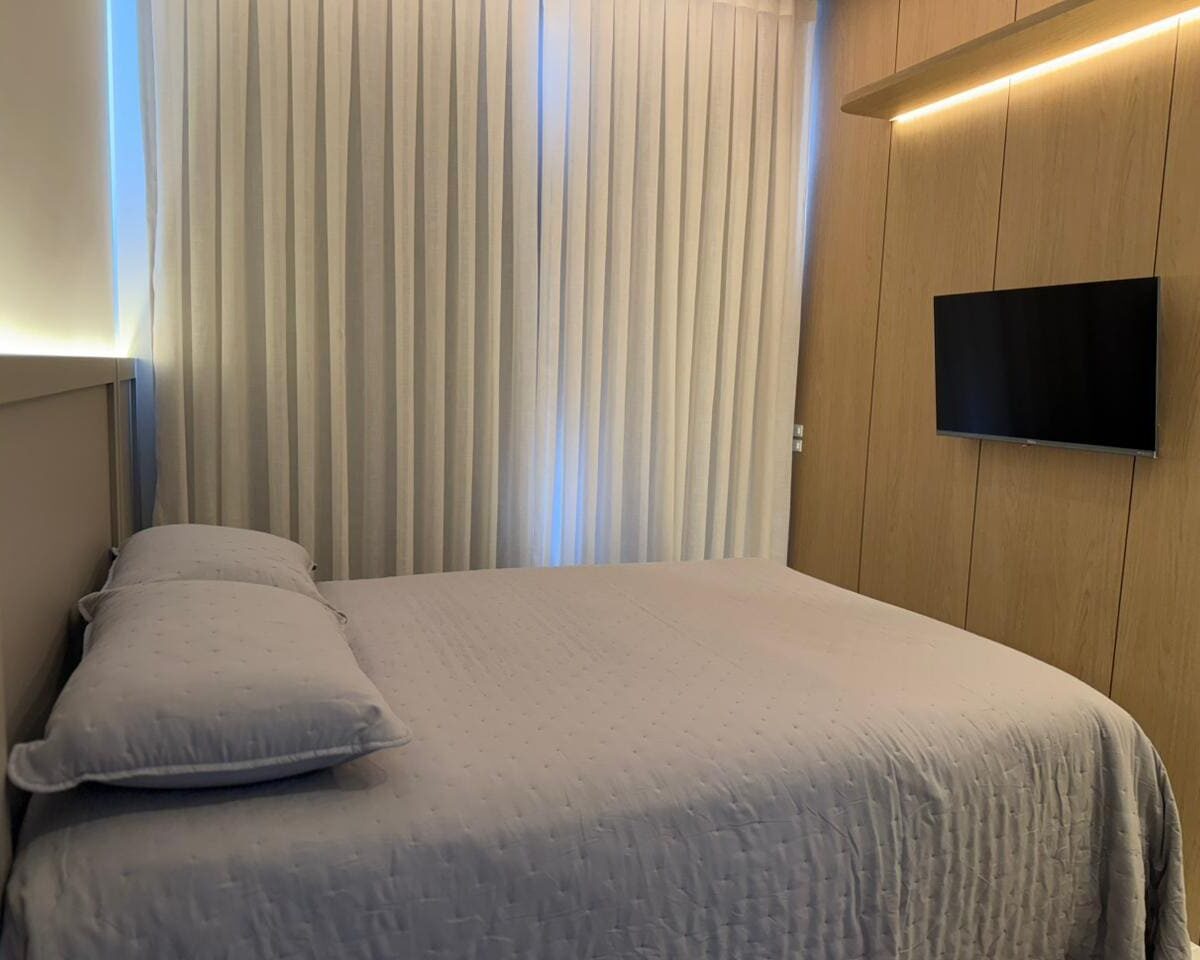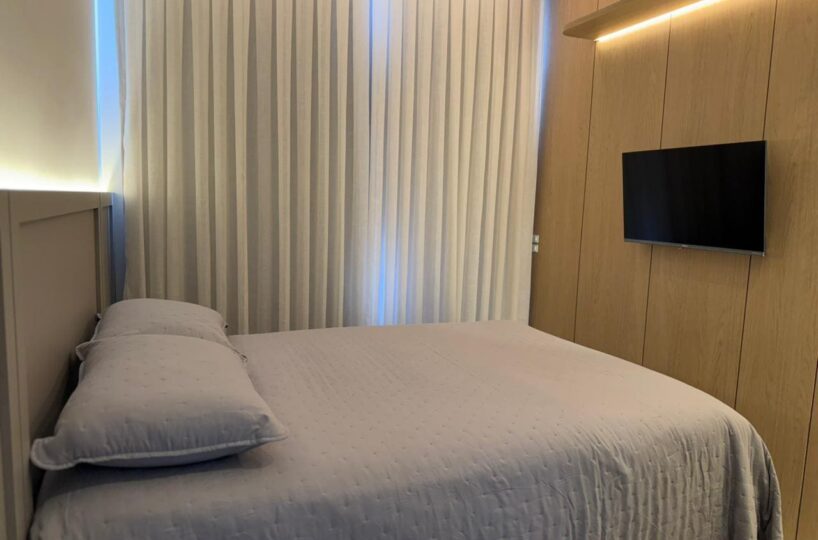 Imóvel dispõe de 02 dormitórios, sendo um deles suíte, localizado no terceiro pavimento, os 02 dormitórios possuem climatização com ar condicionado Split, sala e cozinha integrada, banheiro social, ampla sacada com churrasqueira a carvão e lavanderia.