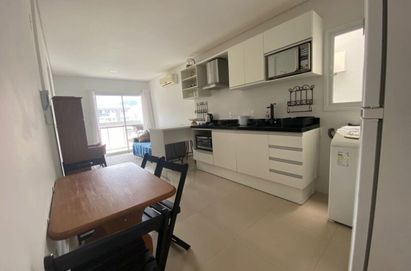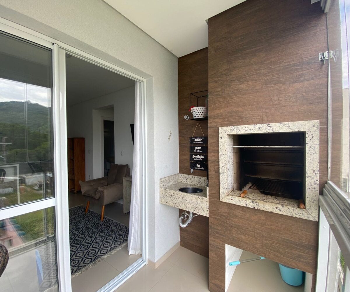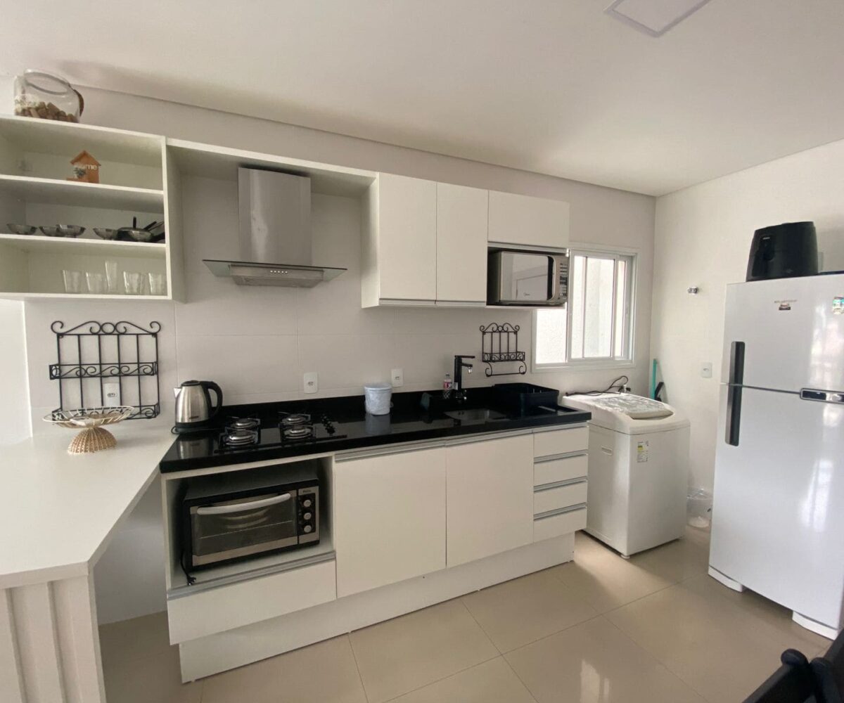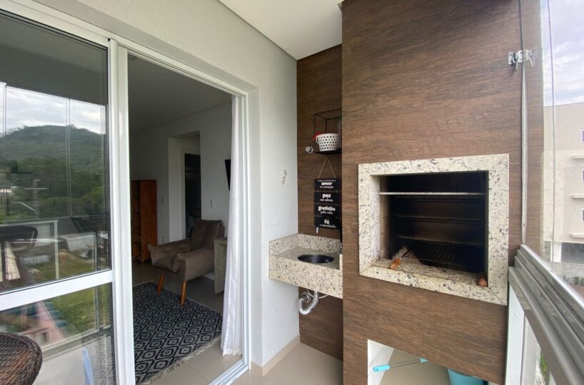 O imóvel dispõe de dois dormitórios,  sala e cozinha integrada, banheiro social e sacada com churrasqueira a carvão.