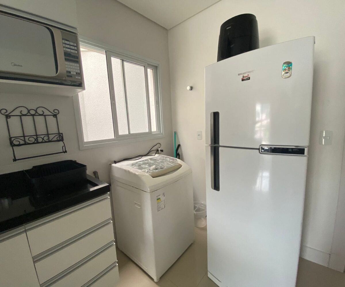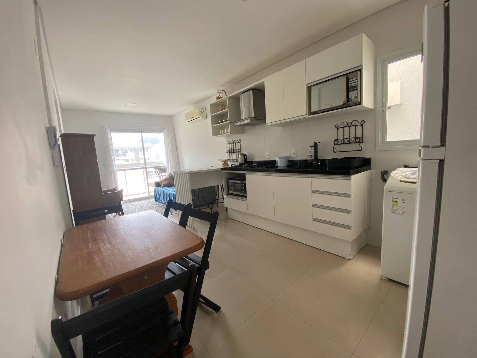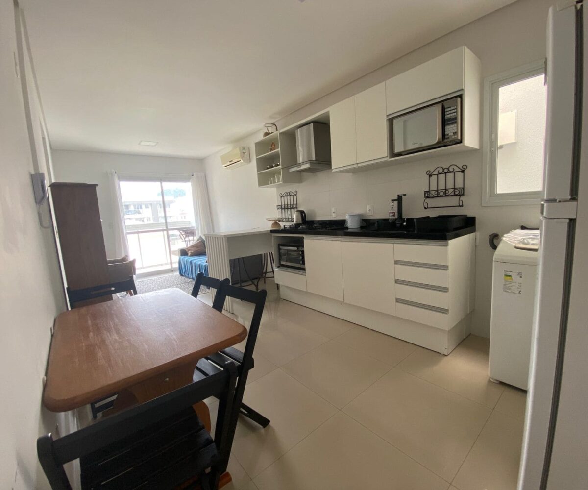 O imóvel dispõe de dois dormitórios,  sala e cozinha integrada, banheiro social e sacada com churrasqueira a carvão.