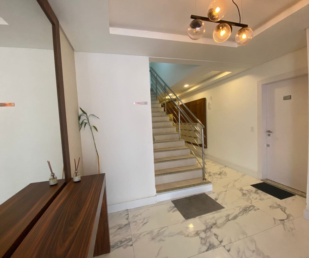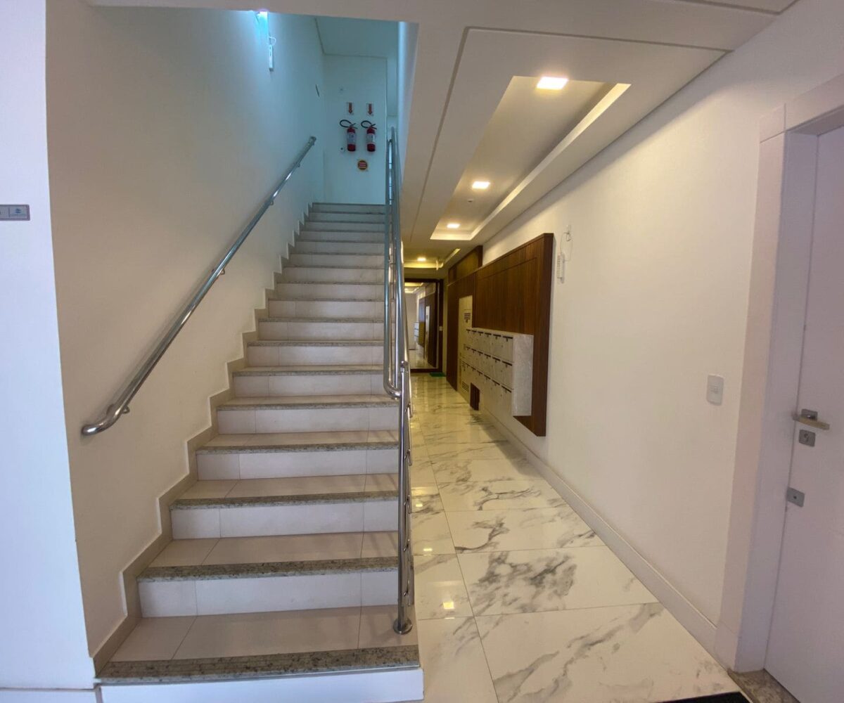 Na área de condomínio o apartamento dispõe de piscina, elevador, uma vaga de garagem, portão eletrônico e interfones inteligentes.