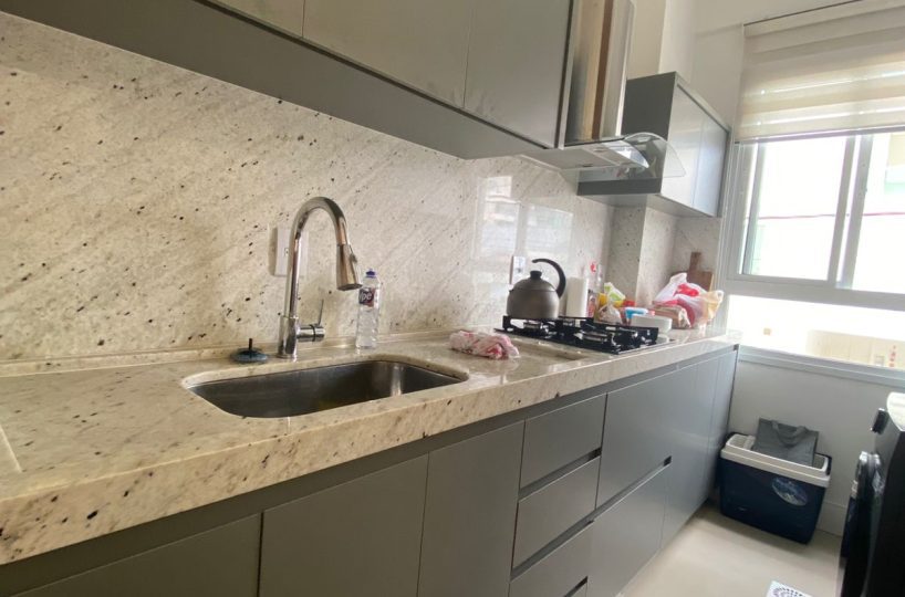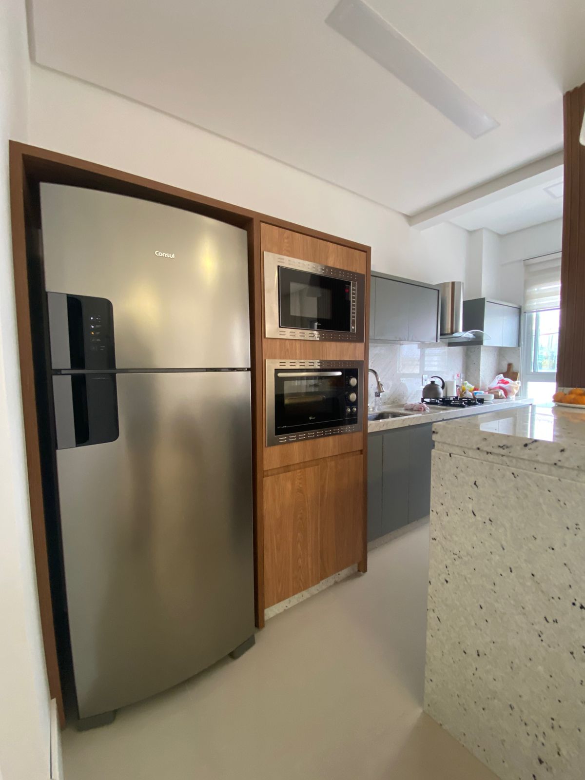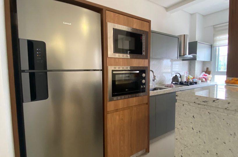 Apartamento de 2 dormitórios sendo 1 suíte, sala e cozinha integrada, sacada com churrasqueira a carvão e lavanderia.