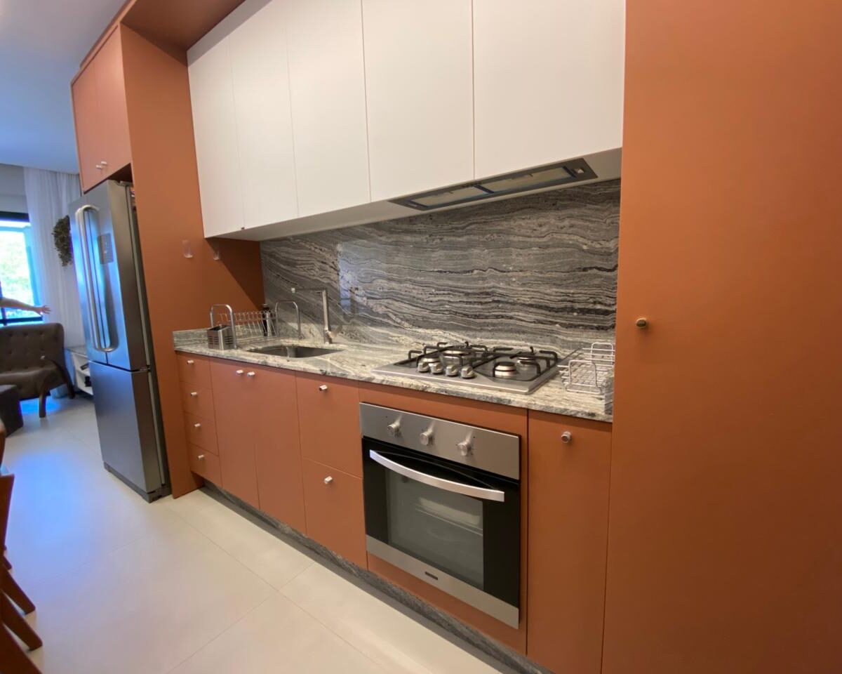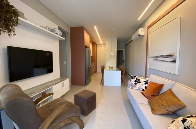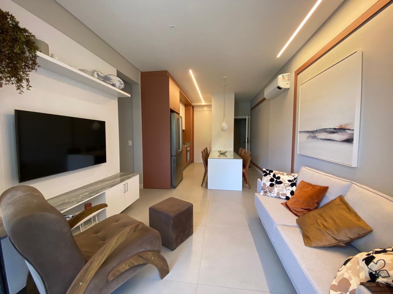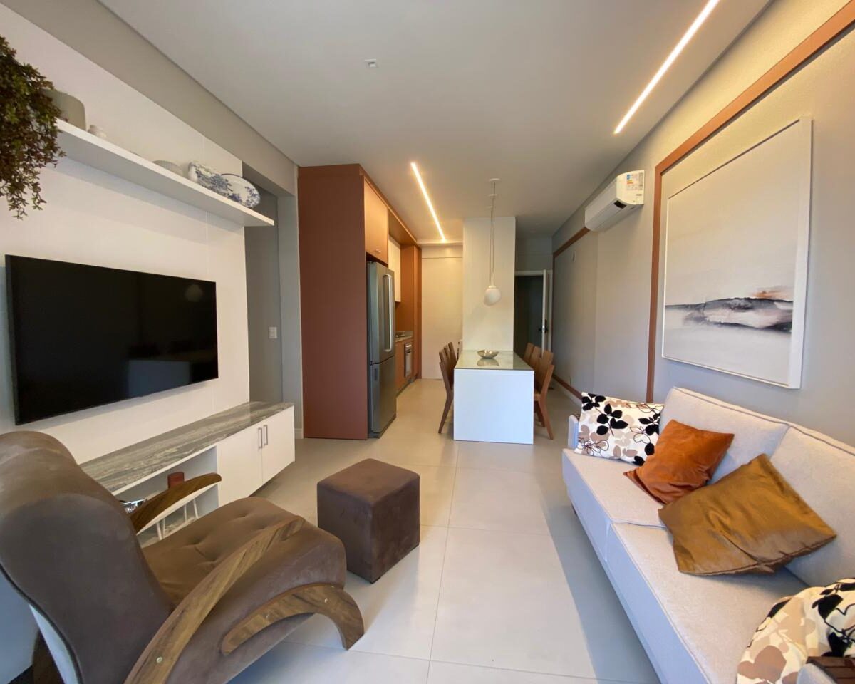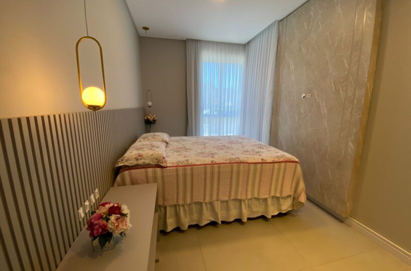 O imóvel dispõe de 03 dormitórios, sendo um deles suíte, climatização com ar condicionado Split, sala e cozinha integrada, banheiro social, lavabo, sacada com churrasqueira a carvão e lavanderia.