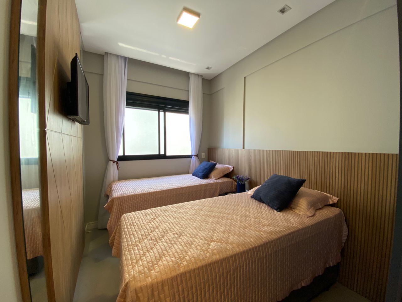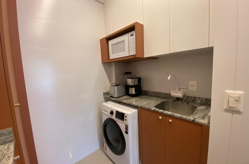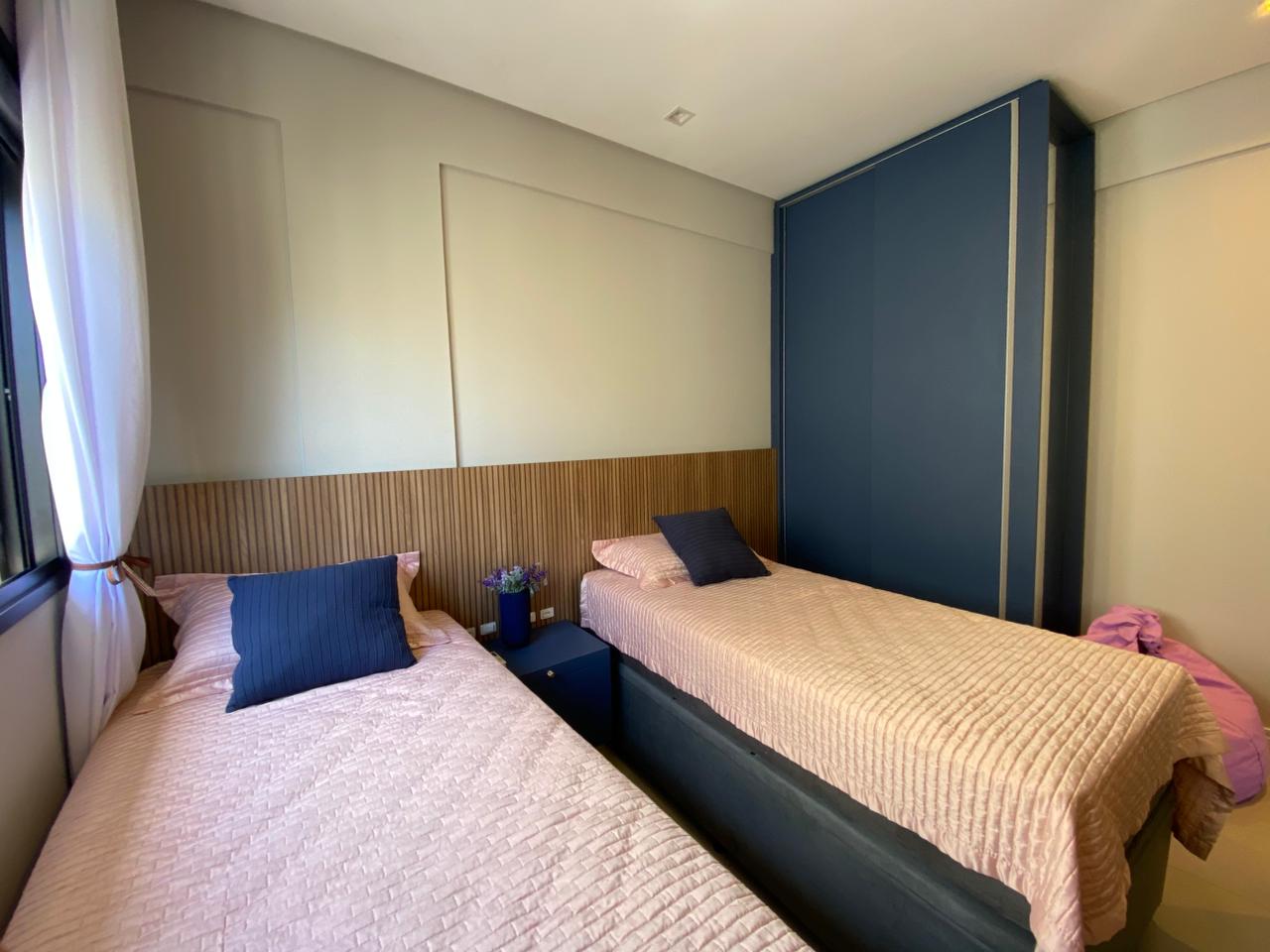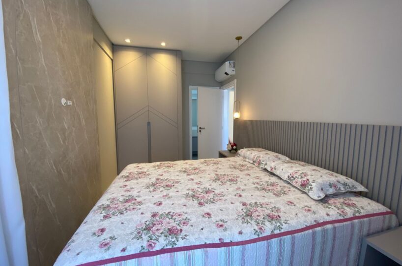 O imóvel dispõe de 03 dormitórios, sendo um deles suíte, climatização com ar condicionado Split, sala e cozinha integrada, banheiro social, lavabo, sacada com churrasqueira a carvão e lavanderia.