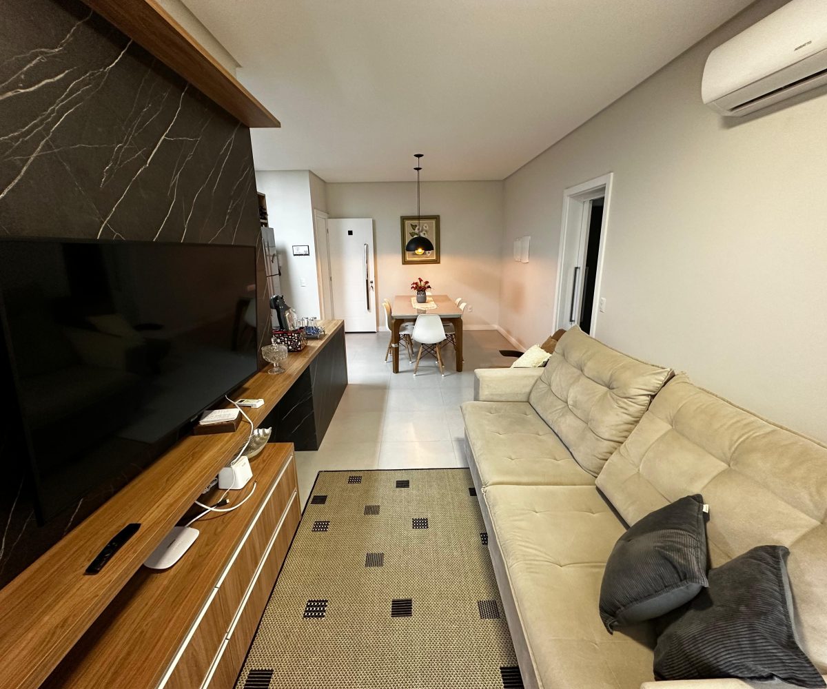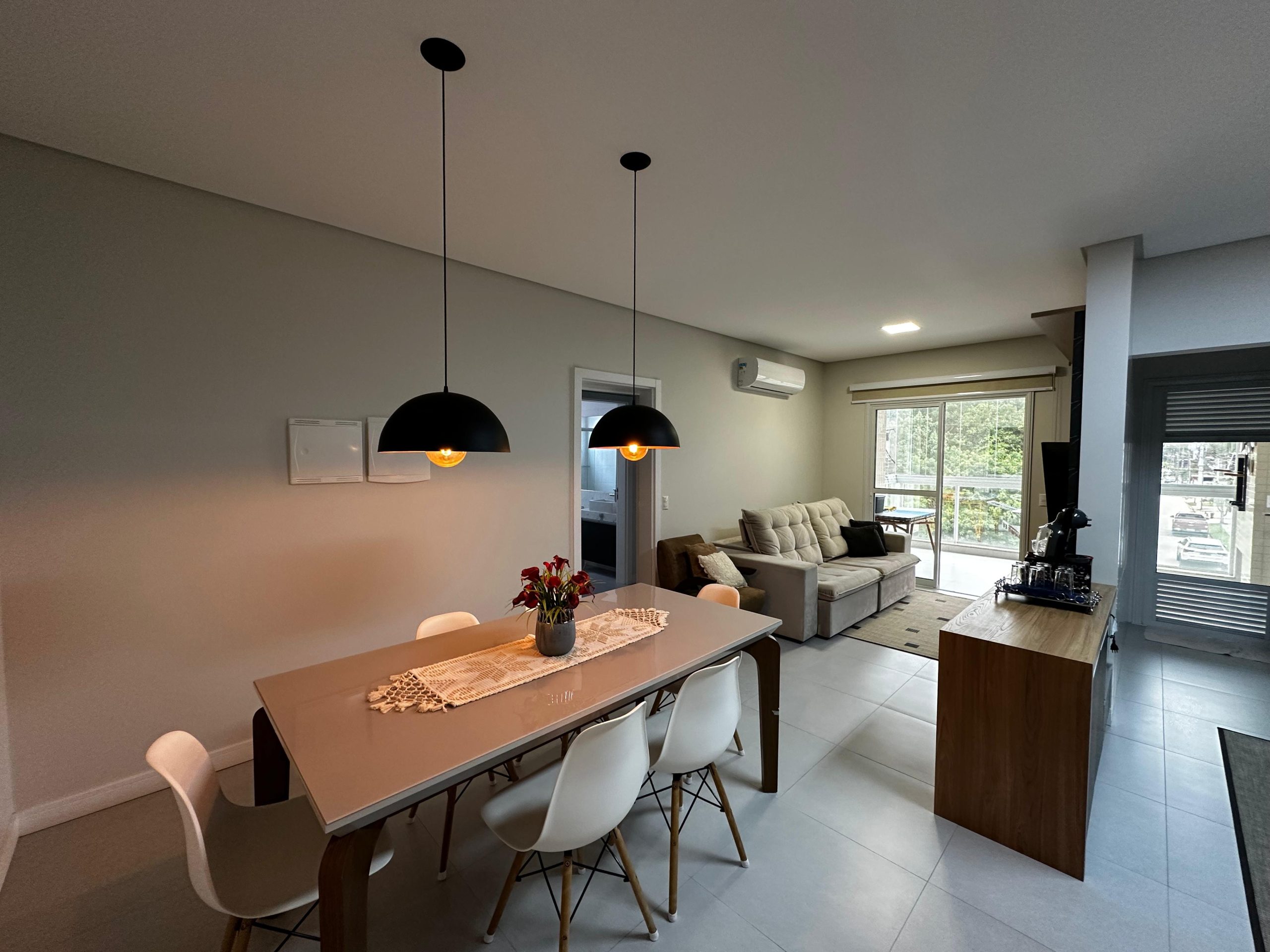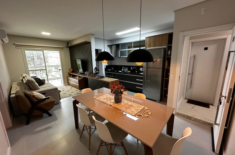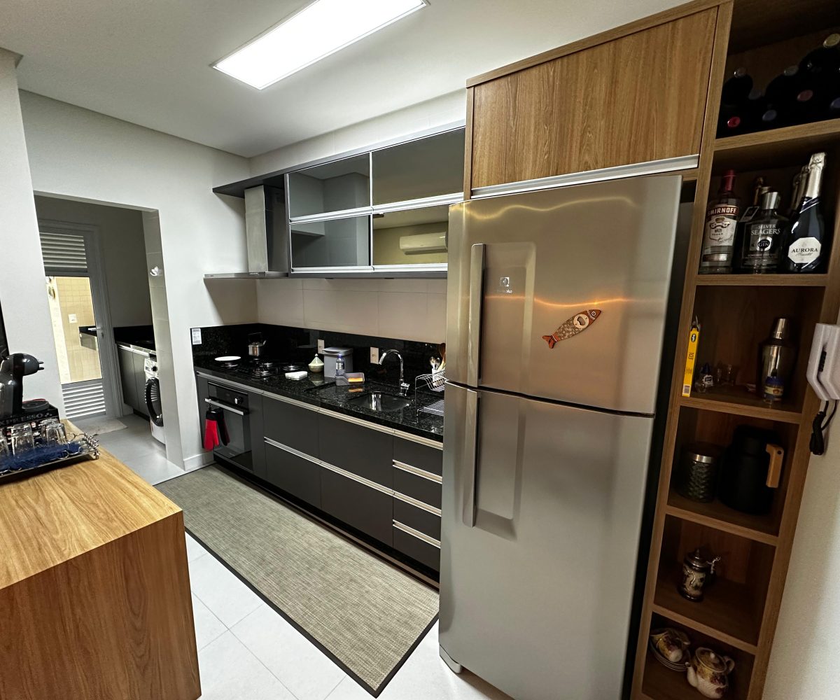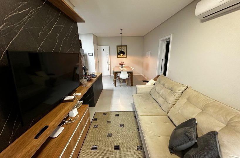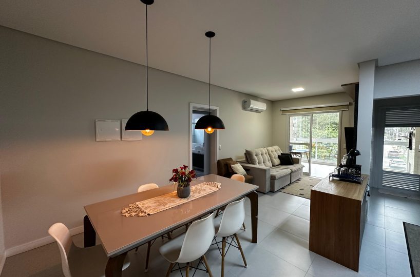 O imóvel dispõe de 03 dormitórios, sendo dois deles suíte, sala e cozinha integradas, banheiro social, lavanderia e ampla sacada com churrasqueira a carvão. Possui climatização, internet WI-FI e todos os utensílios de cozinha necessários para sua estadia.