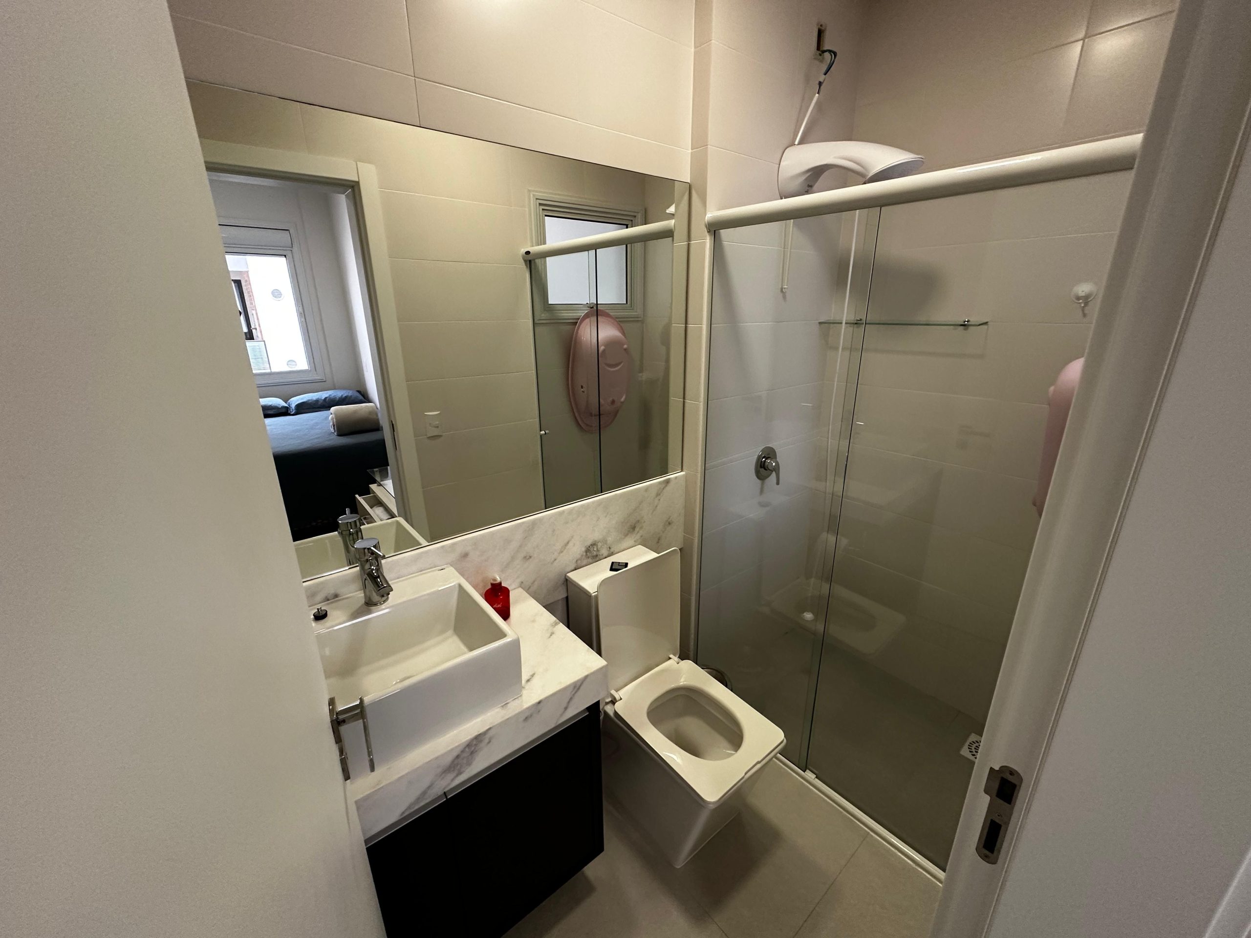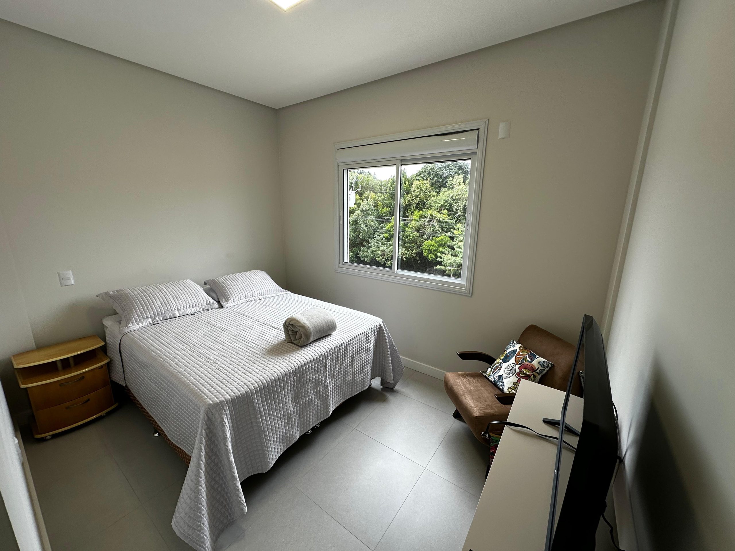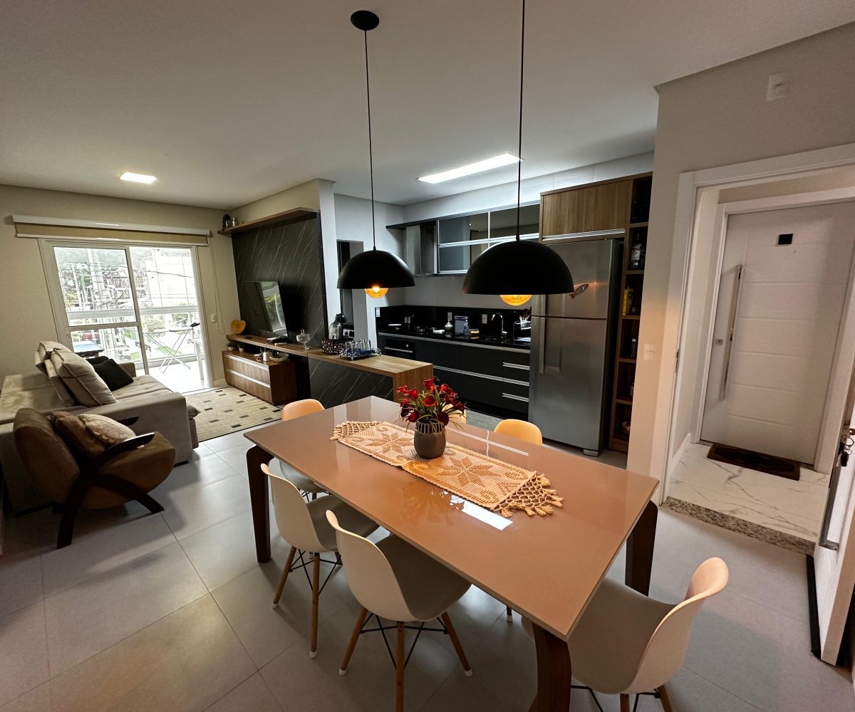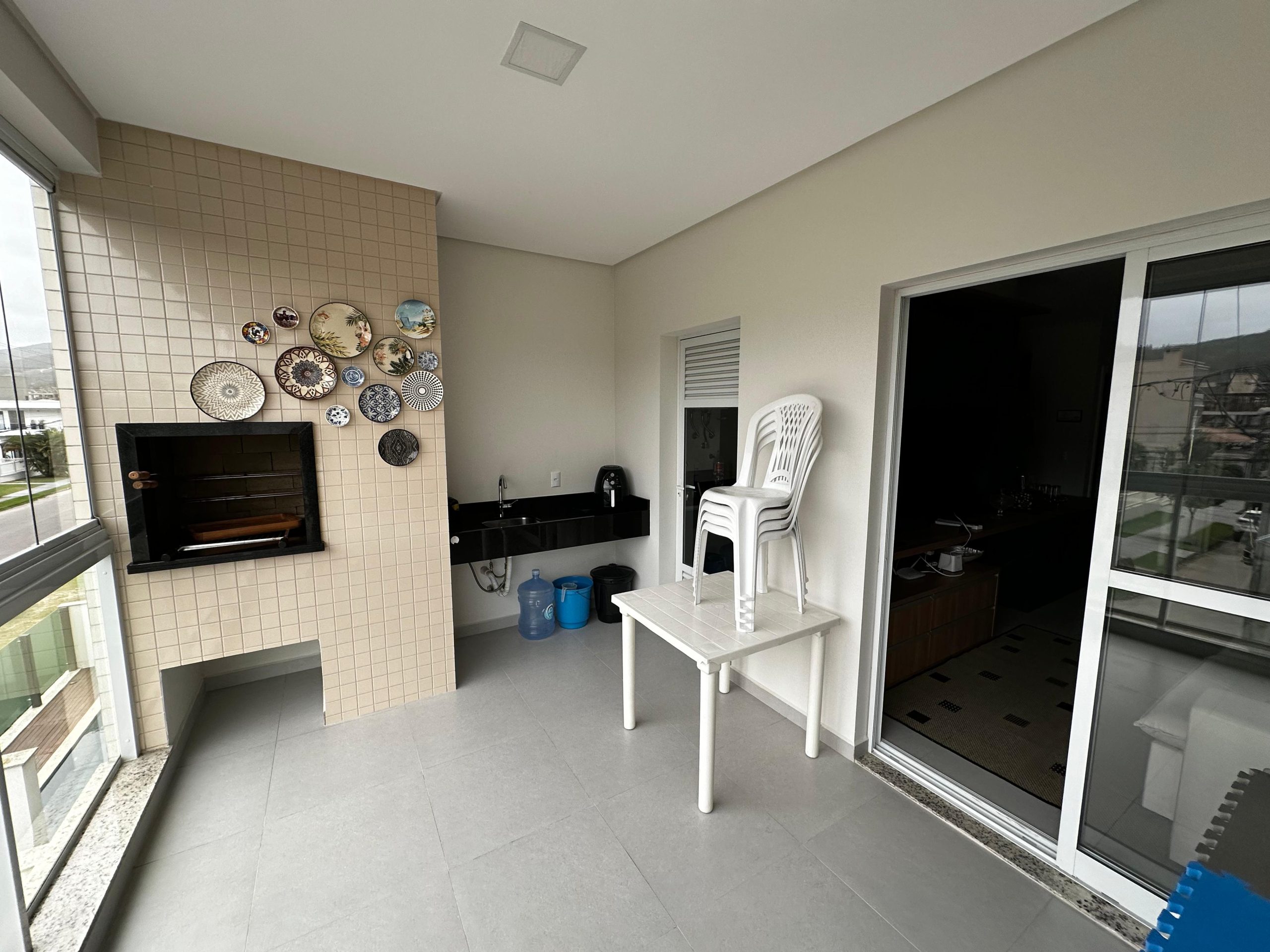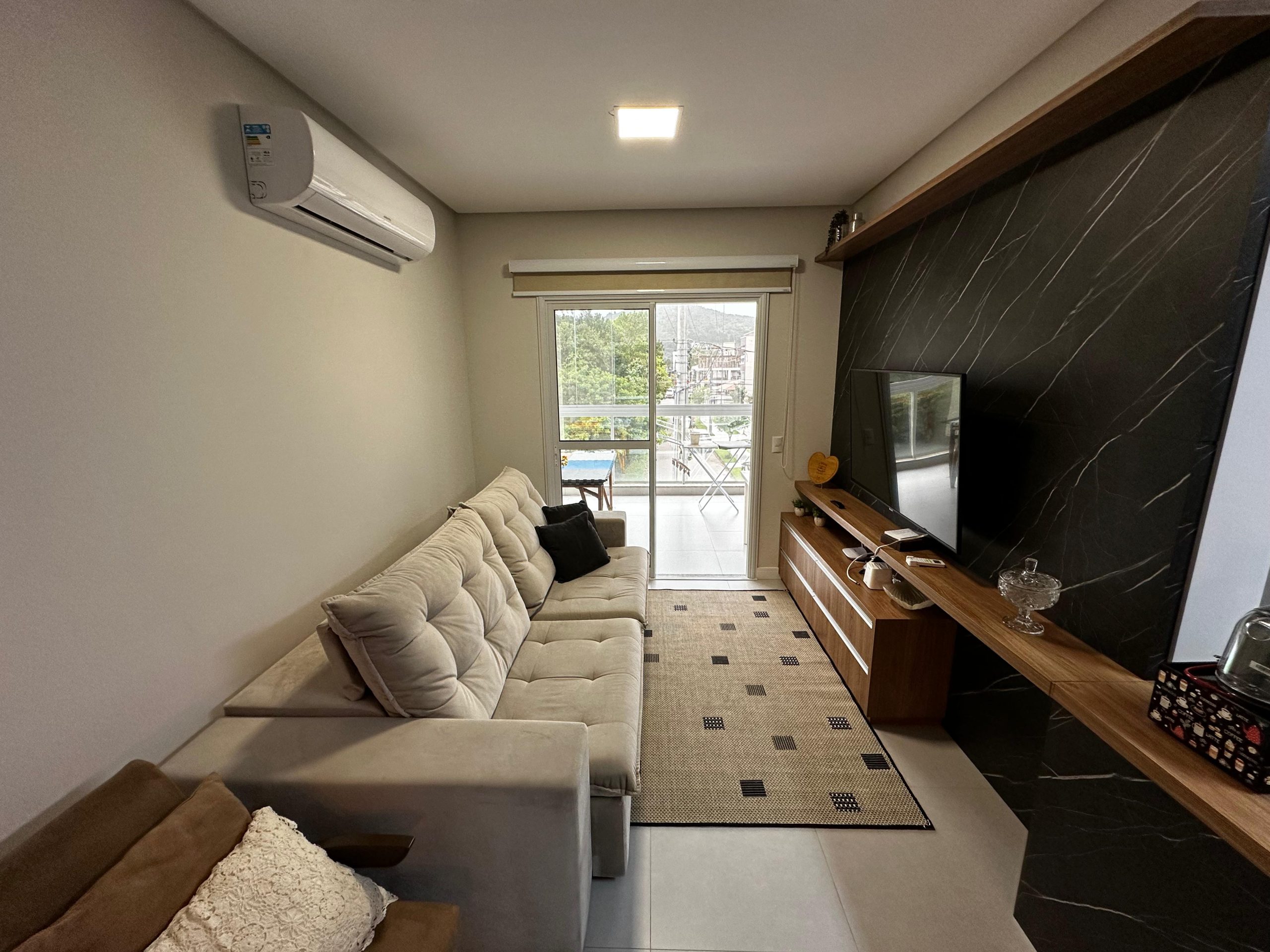 O imóvel dispõe de 03 dormitórios, sendo dois deles suíte, sala e cozinha integradas, banheiro social, lavanderia e ampla sacada com churrasqueira a carvão. Possui climatização, internet WI-FI e todos os utensílios de cozinha necessários para sua estadia.