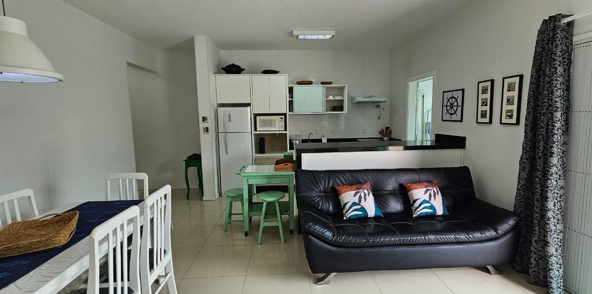 O imóvel dispõe de dois dormitórios, sendo um deles suíte, sala e cozinha conjugadas, banheiro social e churrasqueira a carvão. Possui internet WI-FI e contém todos os utensílios de cozinha necessários para a sua estadia.
