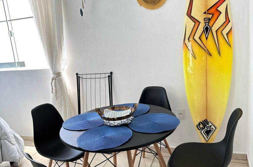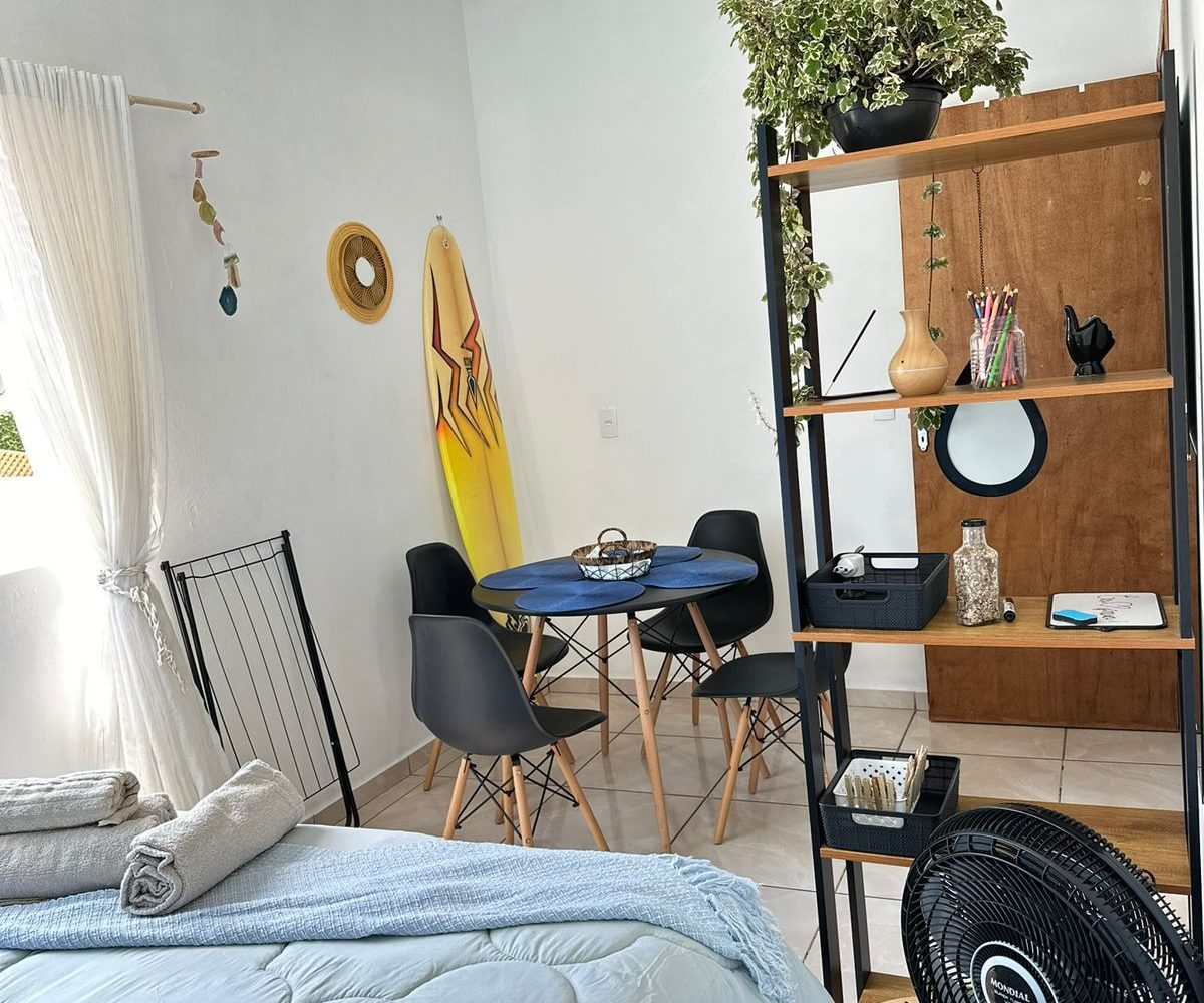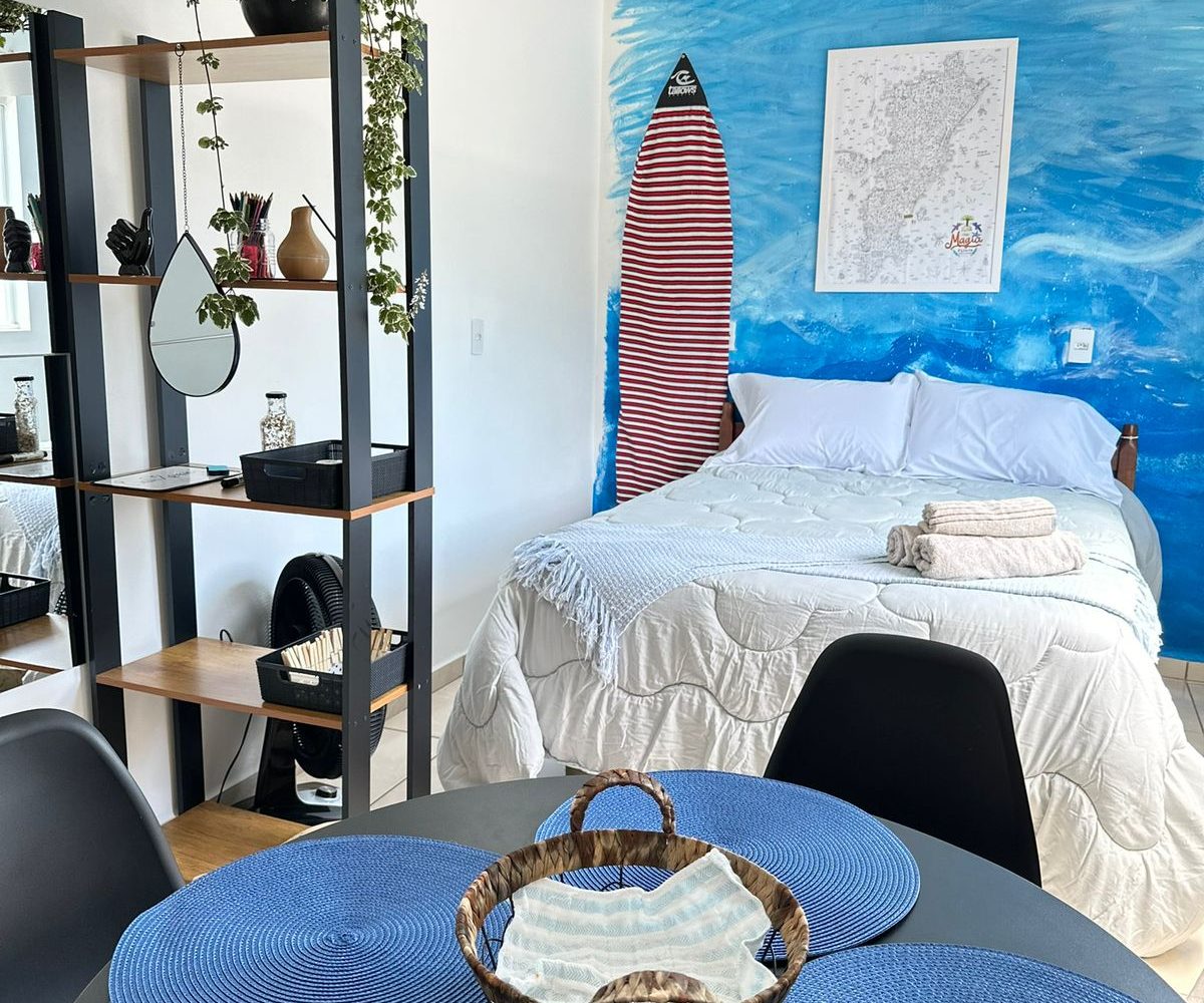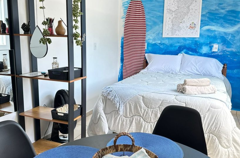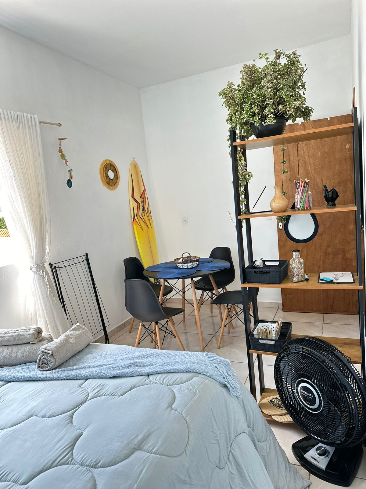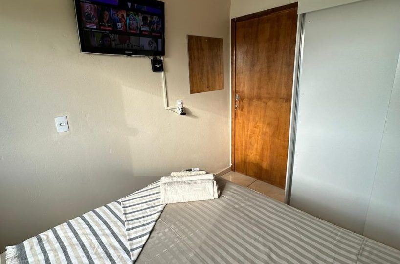 O imóvel dispõe de dois dormitórios, totalmente mobiliado, cozinha, banheiro social.