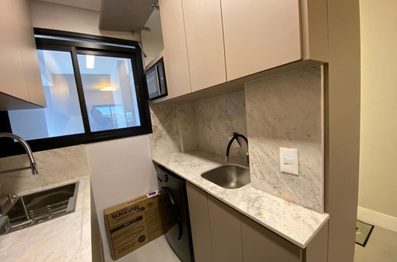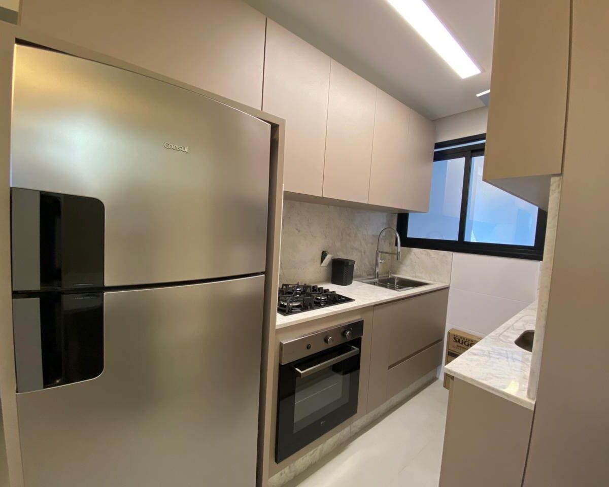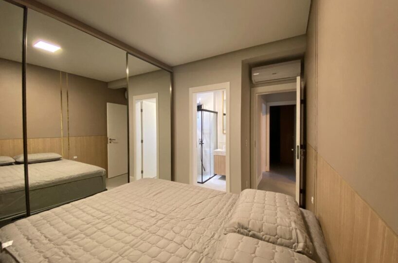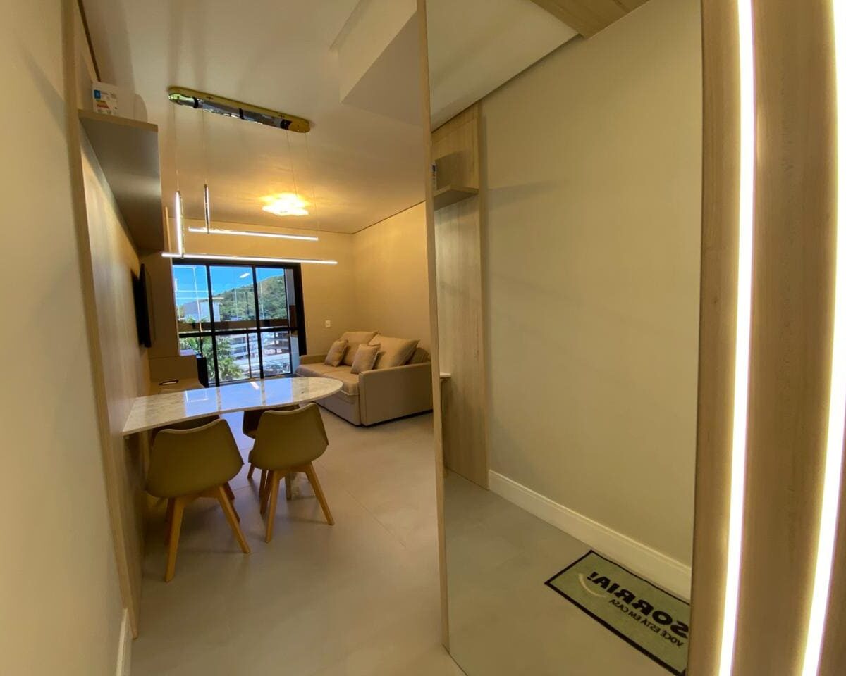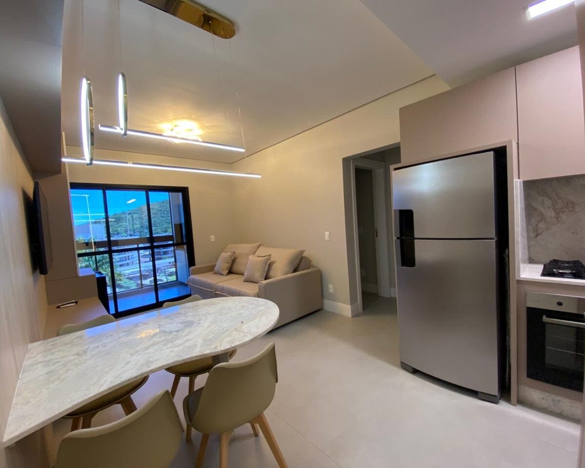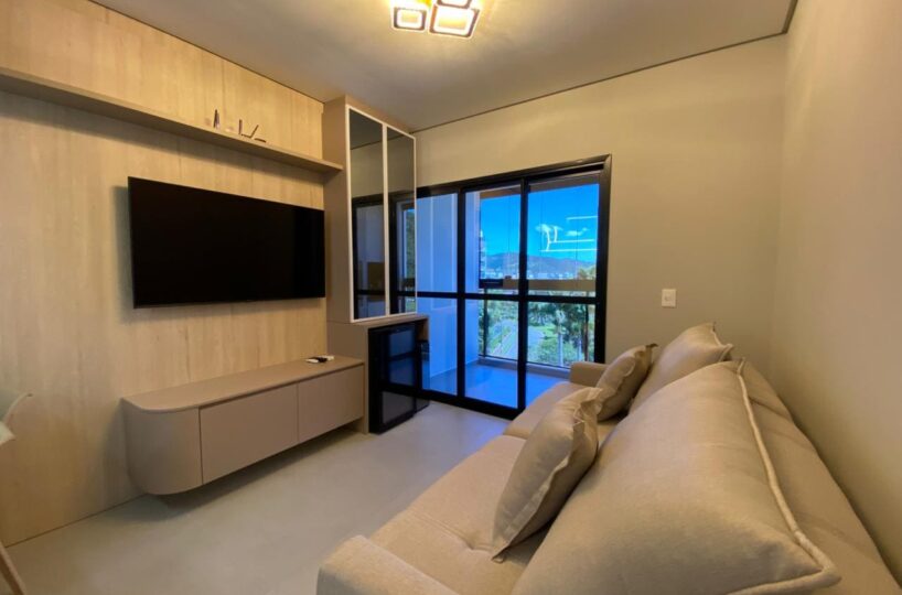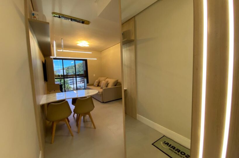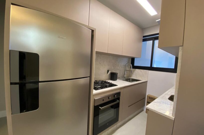 Imóvel dispõe de 02 dormitórios, sendo um deles suíte, localizado no quinto pavimento, os 02 dormitórios possuem climatização com ar condicionado Split, sala e cozinha integrada, banheiro social, ampla sacada com churrasqueira a carvão e lavanderia.
