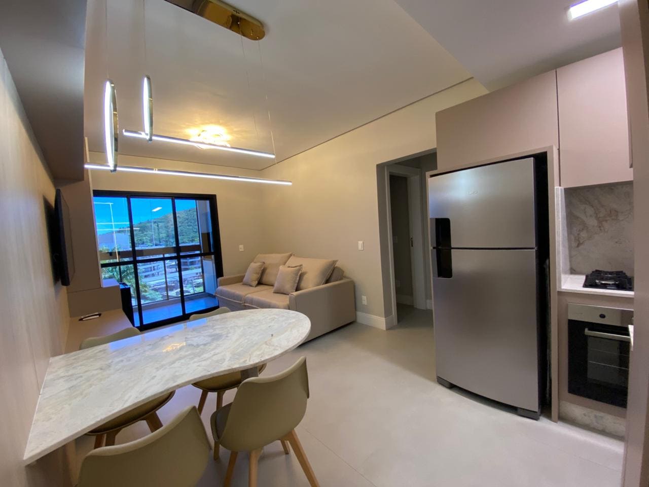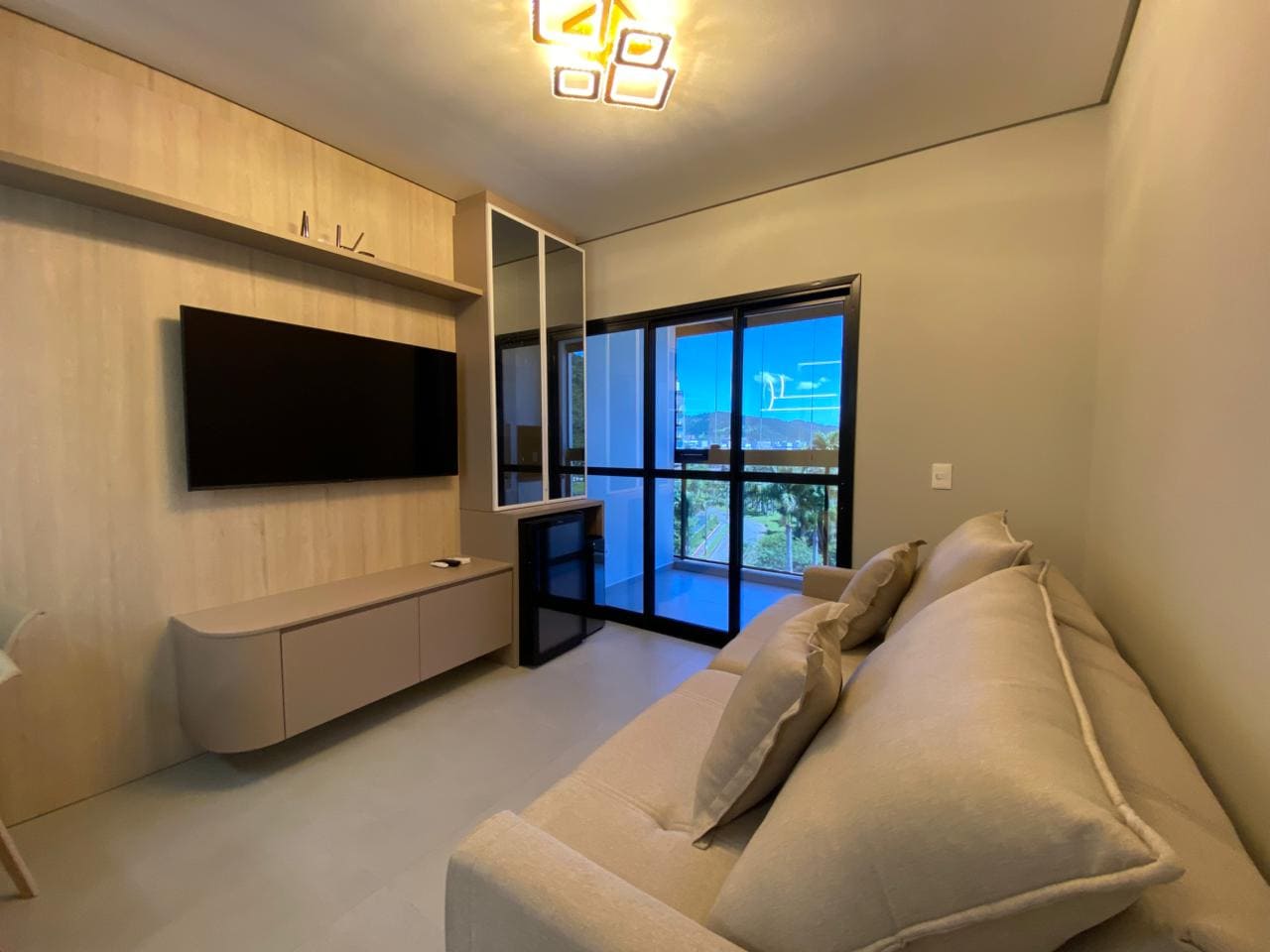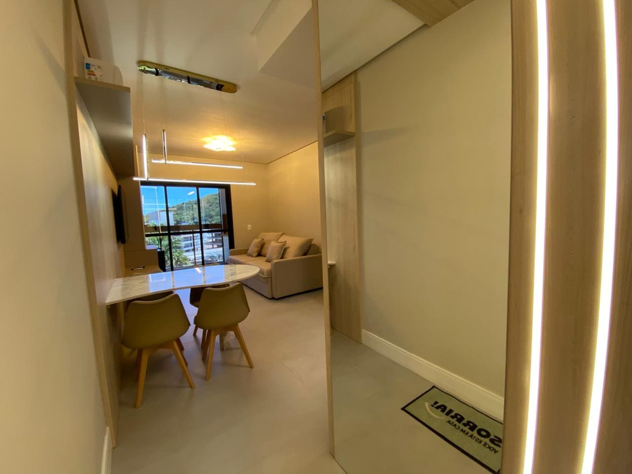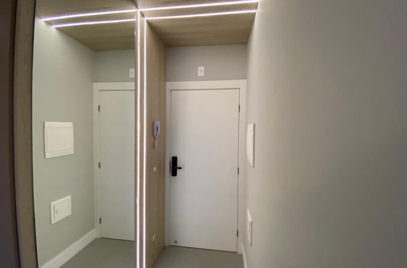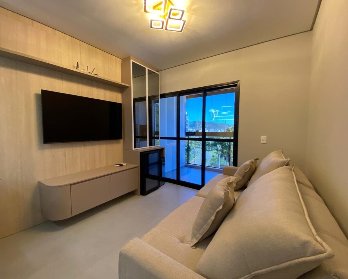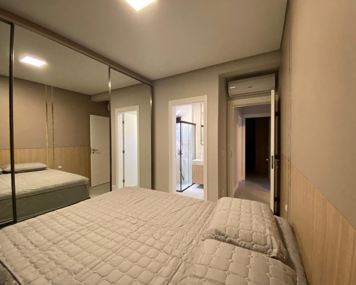 Imóvel dispõe de 02 dormitórios, sendo um deles suíte, localizado no quinto pavimento, os 02 dormitórios possuem climatização com ar condicionado Split, sala e cozinha integrada, banheiro social, ampla sacada com churrasqueira a carvão e lavanderia.