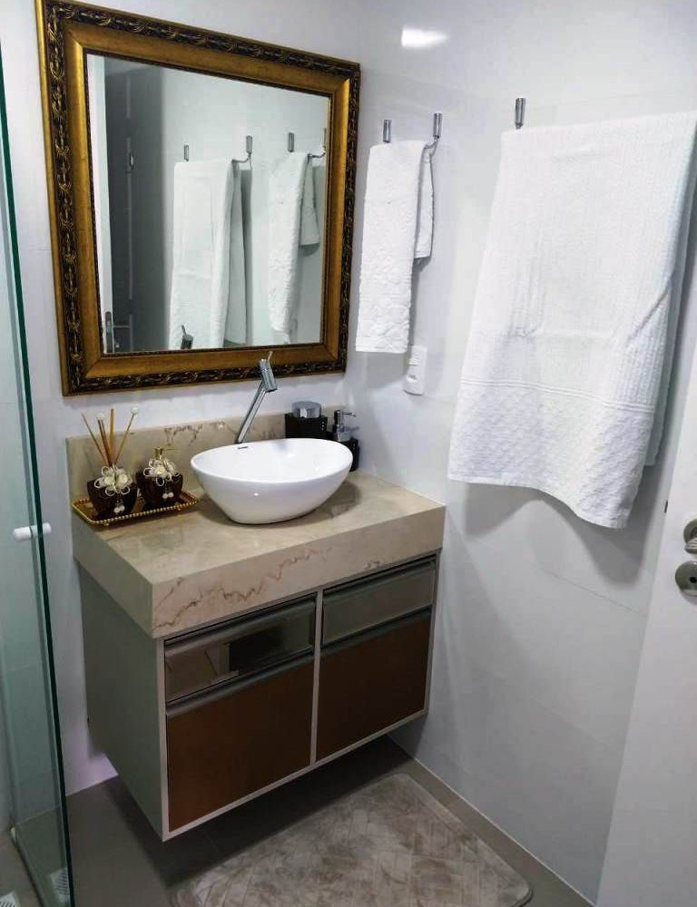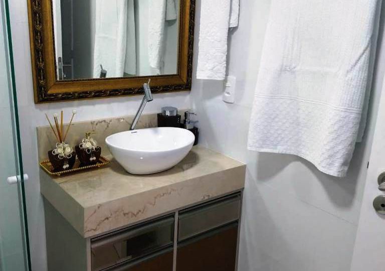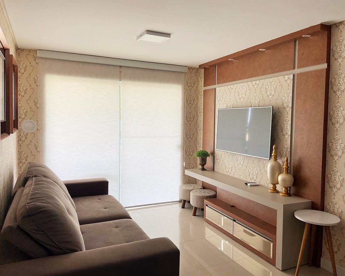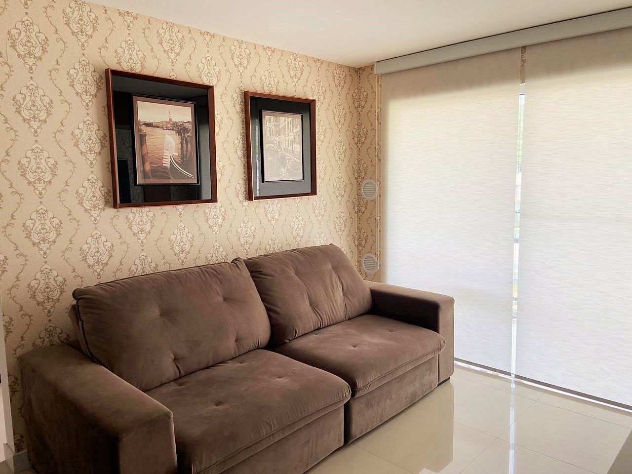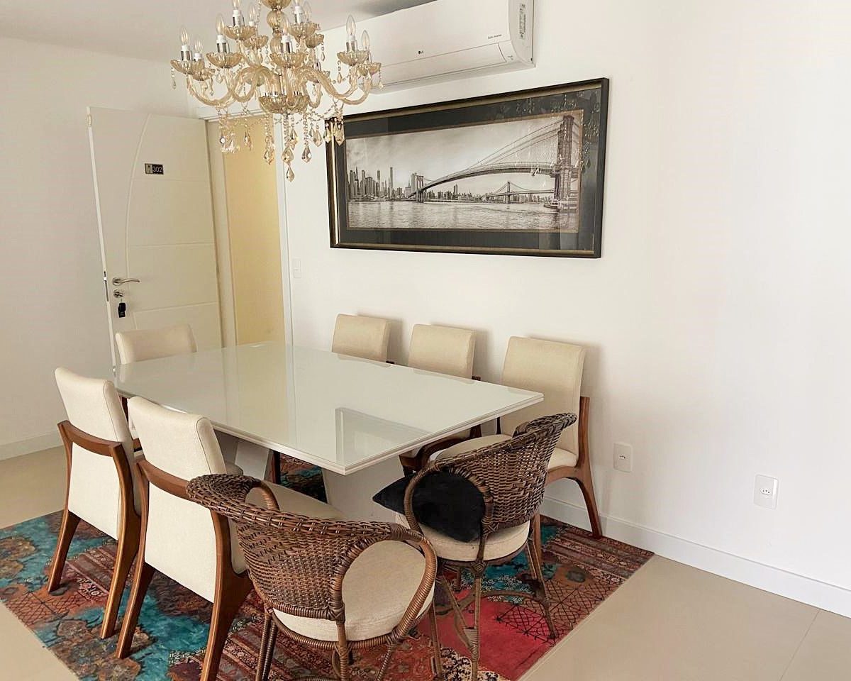 O imóvel dispõe de dois dormitórios, sendo um deles suíte, totalmente mobiliado, sala e cozinha conjugadas, banheiro social e sacada com churrasqueira a carvão .